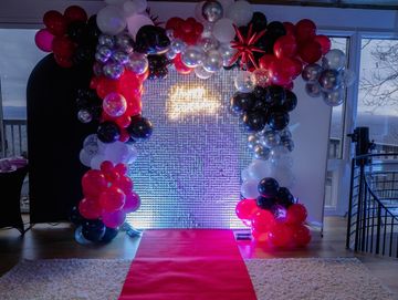Custom color balloon garland with your backdrop or add a backdrop of your choice from our selection.