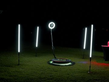 White 8.2x8.2x8.2ft Photo Booth Tent with Air Blower and Color Lights! Perfect for outdoor events or a more classic photo booth experience.